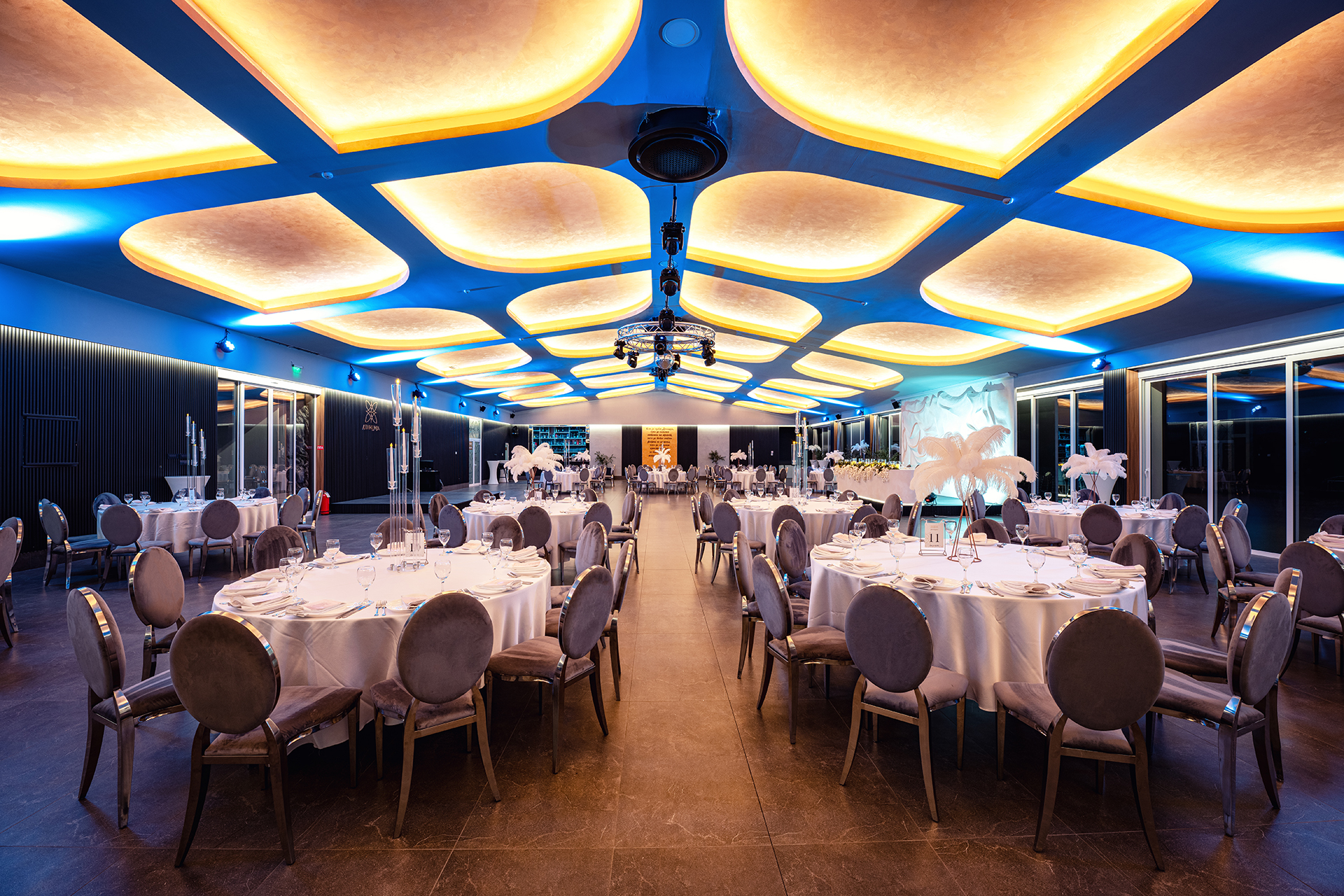 Формата и функцијата на просторот ја прават Дениција уникатна. Две сали кои функционираат одделно или заедно со минимален капацитет од 150 или максимален од 350 гости. Простор кој во лето е комплетно отворен и климатизиран, зиме затворен со најсовремена технологија на греење а оваа трансформација е можна за само неколку минути.